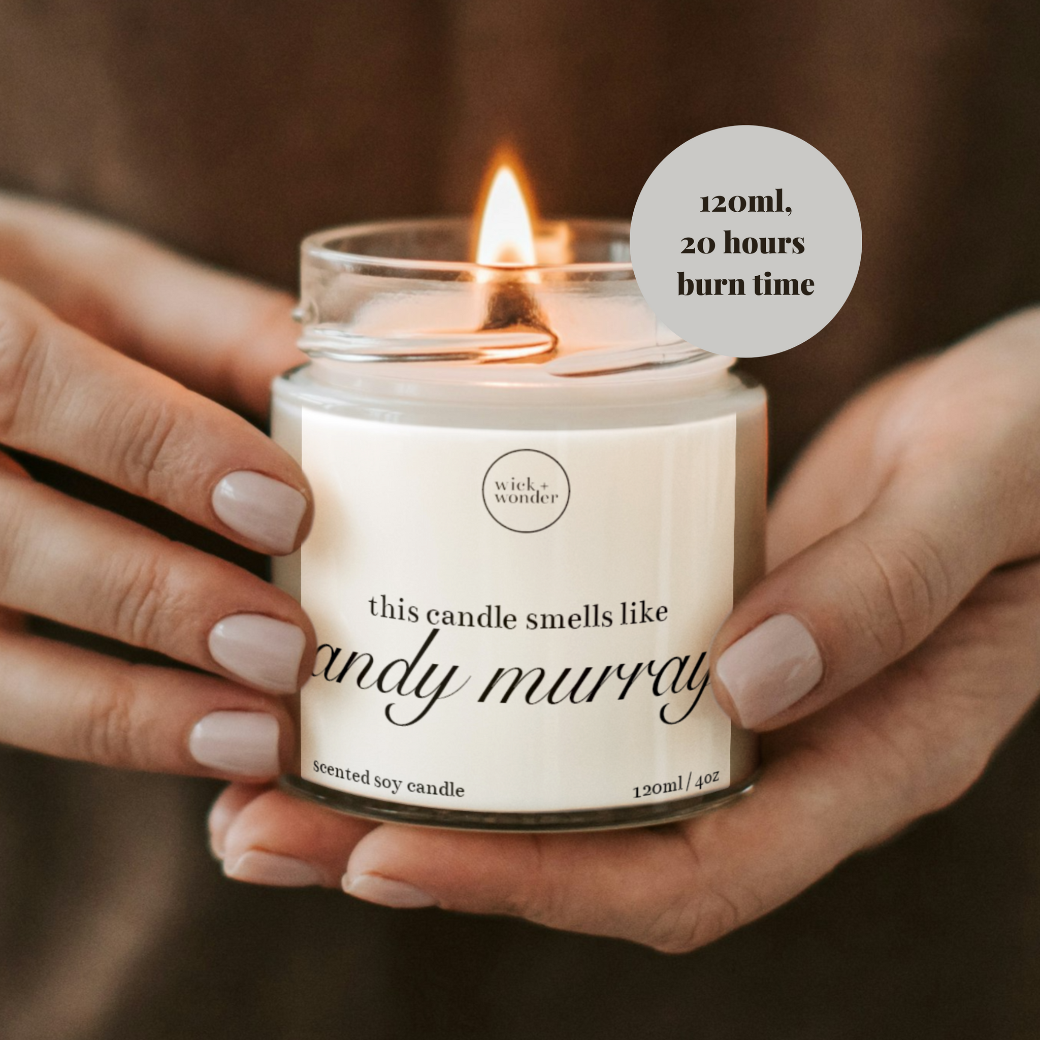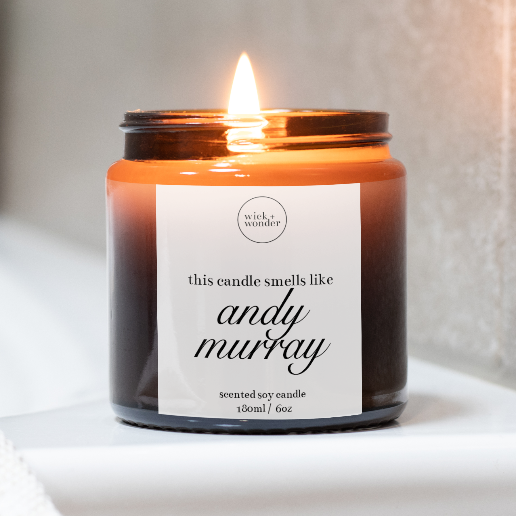 Need a gift for a tennis fan? This 'Smells Like Andy Murray Candle' is just for you. Handmade with soy wax and luxury fragrance, our Andy Murray candle features a gorgeous, surprise scent inspired by the tennis superstar. This makes a super fun tennis gift – and is great for burning while watching a match.